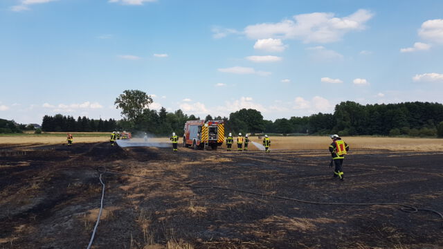Aus noch unklaren Gründen geriet eine größere Feldfläche in Brand. Gemeinsam mit der Feuerwehr Ober-Roden wurde zunächst ein Pendelverkehr für die Löschwasserversorgung eingerichtet und der Flächenbrand mit mehreren Strahlrohren bekämpft. Insgesamt waren ca. 33000 Liter Wasser nötig, um das Feuer zu löschen und ein weiteres aufflammen bzw. eine Ausbreitung zu verhindern.