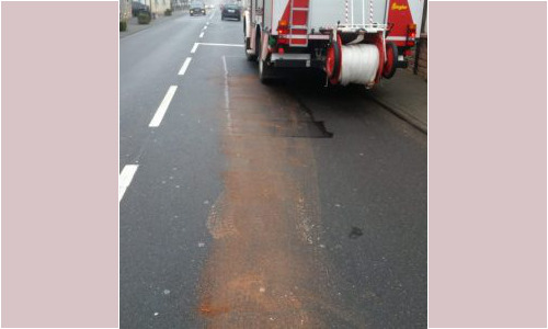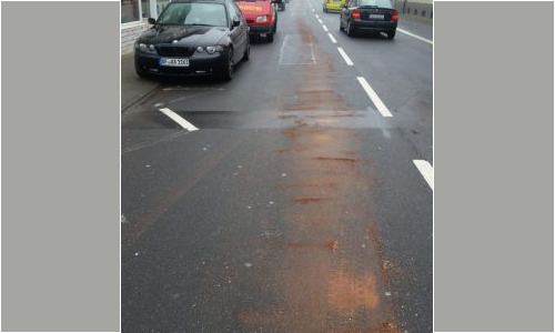 Eine ca. 500m lange Ölspur wurde mit Ölbindemittel aufgenommen und die Fahrbahn im Anschluss gereinigt.