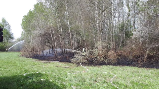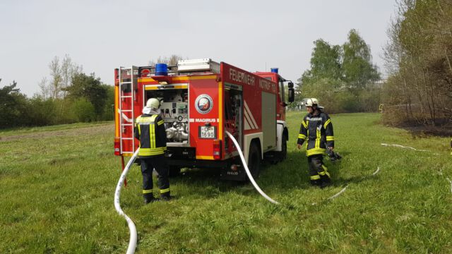 Es brannte eine Feldfläche mit dichter Vegetation. Ein Übergriff der Flammen auf den dortigen Baumbestand konnte durch den Einsatz mehrerer C-Rohre unterbunden werden. Der gesamte Bereich wurde abschließend auf Glutnester überprüft und gewässert, um einem erneuten aufflammen entgegen zu wirken.