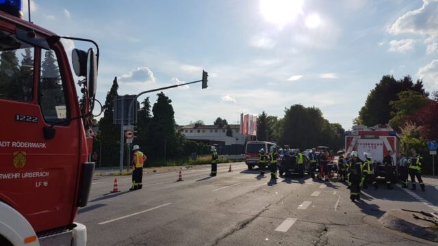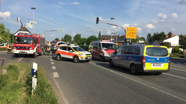 Zwei PKW kollidierten im Kreuzubgsbereich aus bisher ungeklärter Ursache. Entgegen erster Meldungen war einer der PKW Insassen doch nicht eingeklemmt. Die Unfallbeteiligten wurden durch die Feuerwehr bis zum Eintreffen des Rettungsdienstes betreut. Die Fahrbahn wurde darüber hinaus abgesperrt und gereinigt.
