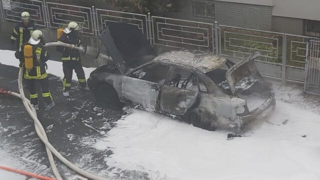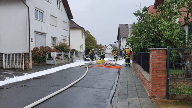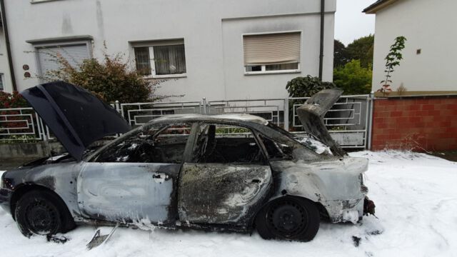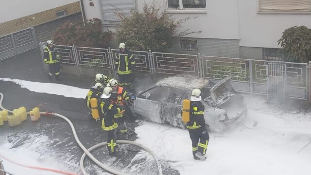 Bei Eintreffen der Feuerwehr stand ein PKW im Vollbrand. Der brennende PKW wurde unter Atemschutz und Vornahme eines Schaumrohrs, durch einen Trupp gelöscht.