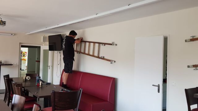 Dank dem Einsatz zweier Kameraden können die Verschönerungsarbeiten in unserem Aufenthaltsraum nun bald abgeschlossen werden und auch das neue Hochregallager wird demnächst fertigstellt sein.